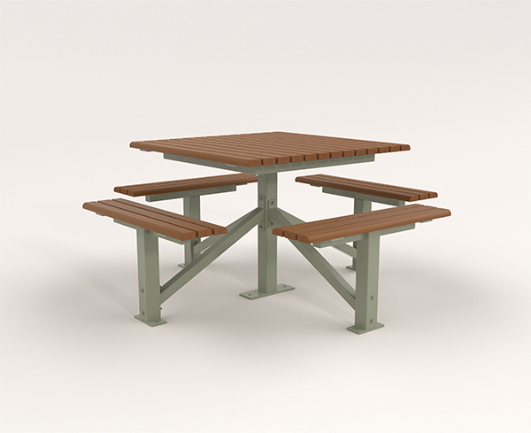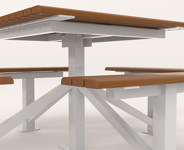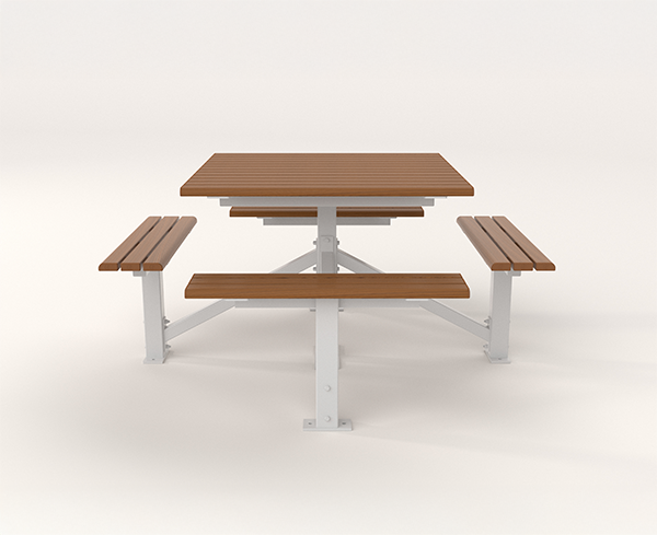 The 4-Sided Pedestal Setting offers space efficient seating on all sides, ideal for communal spaces. Modernised with our feature Avoca battens, it is available only in an above-ground bolt-down installation option.